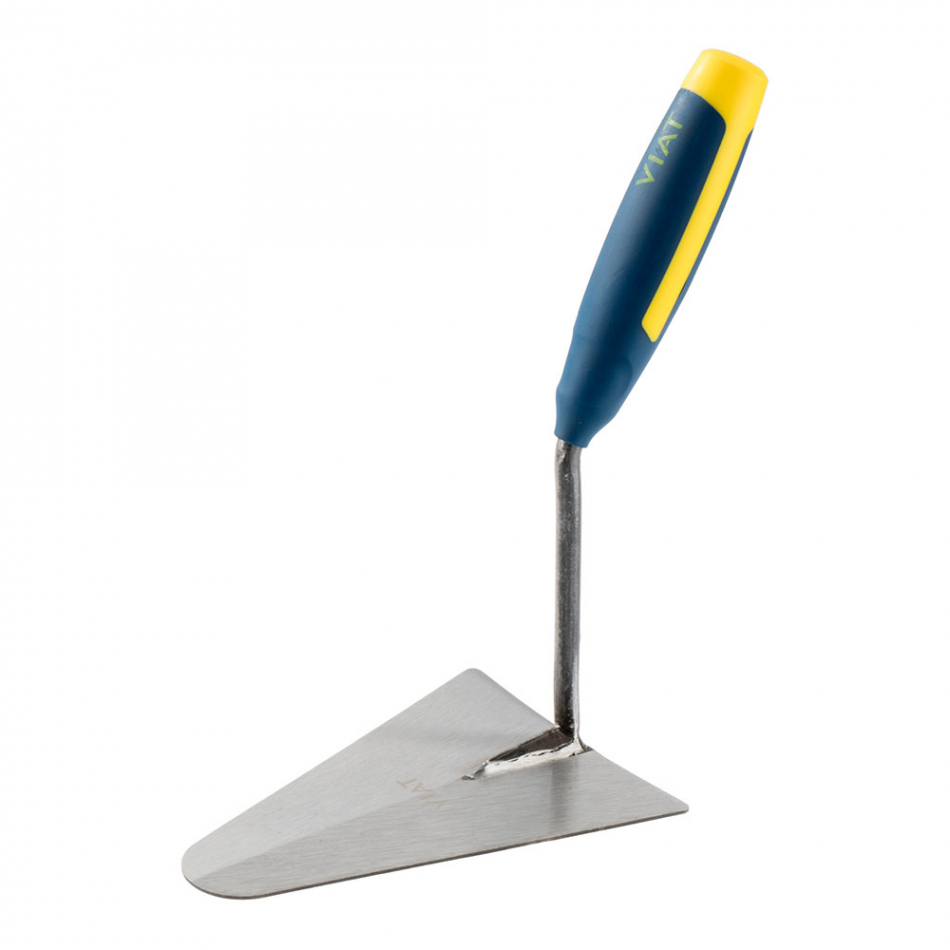 Paleta soldada catalana, de chapa de acero tratada con mango bimaterial ergonómico para una mayor comodidad, vt41b tratada para una mayor resistencia al desgaste, hoja flexible para conseguir un mejor acabado, mango bimaterial ergonómico para una mayor comodidad, para trabajos de albañilería y alicatado, dimensiones 118x240x245mm peso 0,35kg