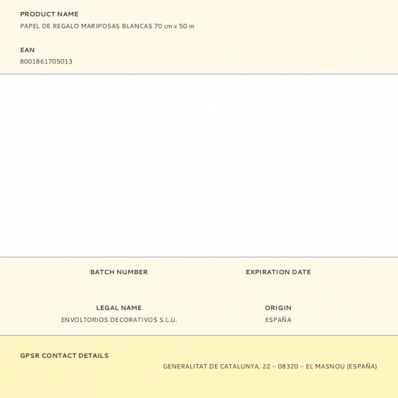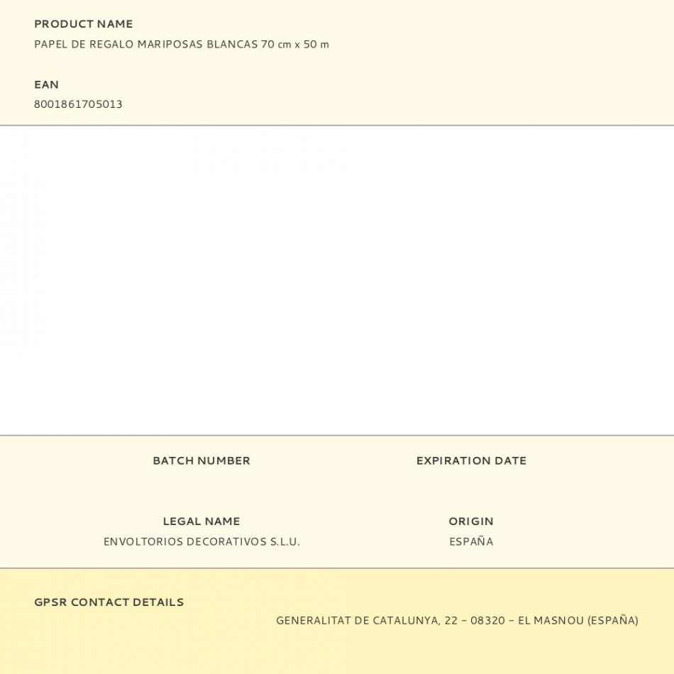 Papel de regalo mariposas blancas 70 cm x 50 m