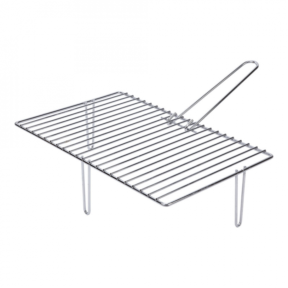 Parrilla cincada de 3 patas para chimeneas. medida: 46,6x28cm (ancho/fondo). con mango extraíble. patas de 120mm.