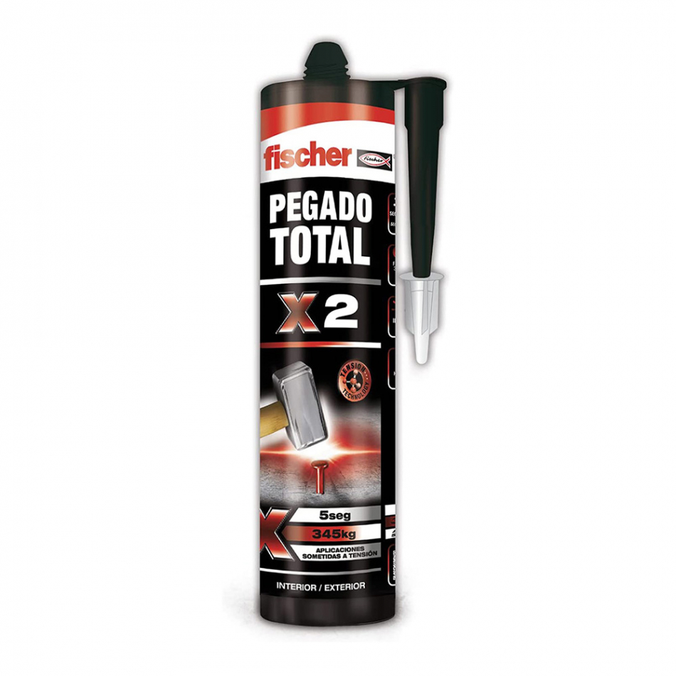 Pegamento extrafuerte para todo x 2 para interior y exterior (300 ml). pega sobre ladrillo, hormigón, plástico, metales, madera, corcho y la mayoría de materiales, incluso sobre superficies húmedas, flexible, pintable, alto agarre inmediato en 10 segundos. aplicar con pistola de silicona sobre una de las superficies formando cordones, juntarla con la otra superficie y apretar unos segundos la fuerza máxima se alcanza tras un tiempo de espera de 24 horas. para adherir listones de madera, molduras, zócalos, frisos, paneles, percheros, buzones, tapetas puertas, celosías de madera, canaletas y en general cualquier material común en construcción o bricolaje