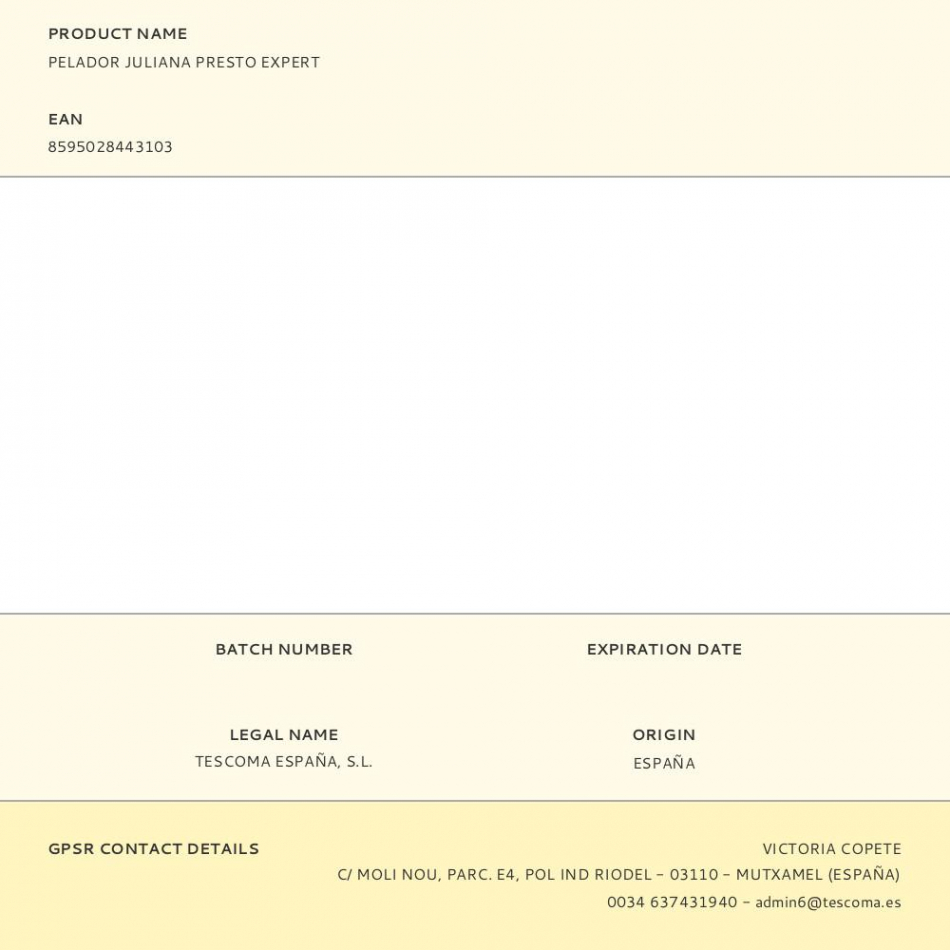 Pelador juliana presto expert con hoja de acero inoxidable. apto para lavavajillas