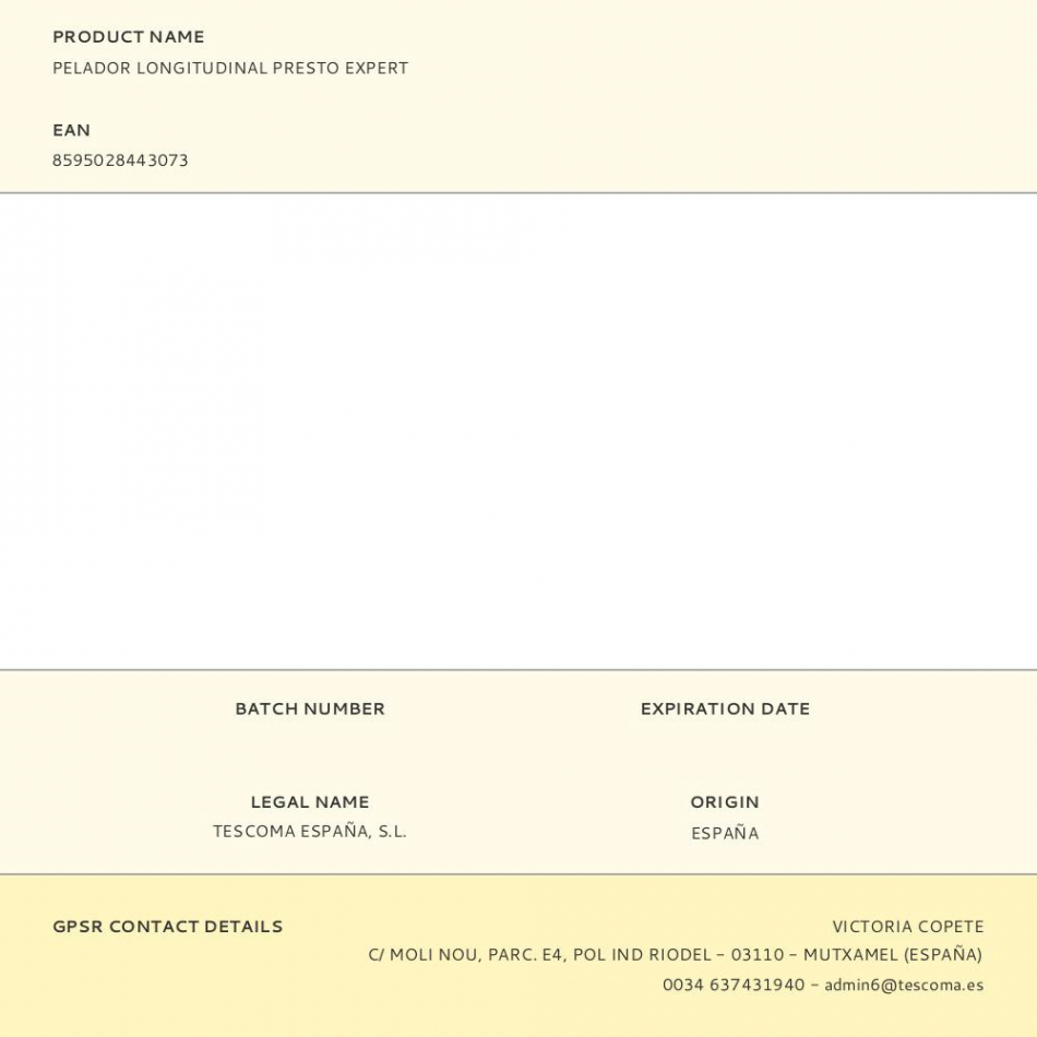 Pelador longitudinal presto expert con hoja de acero inoxidable. apto para lavavajillas