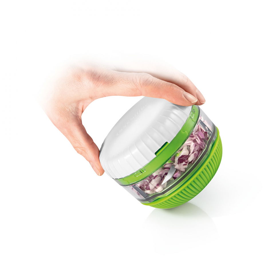 Picadora giratoria handy. pica fácil y rápidamente los alimentos al tamaño deseado. excelente para hierbas, ajos, cebollas, etc. fabricada de plástico resistente con tratamiento antideslizante, cuchillas de acero inoxidable de alta calidad. garantía de 3 años. tescoma