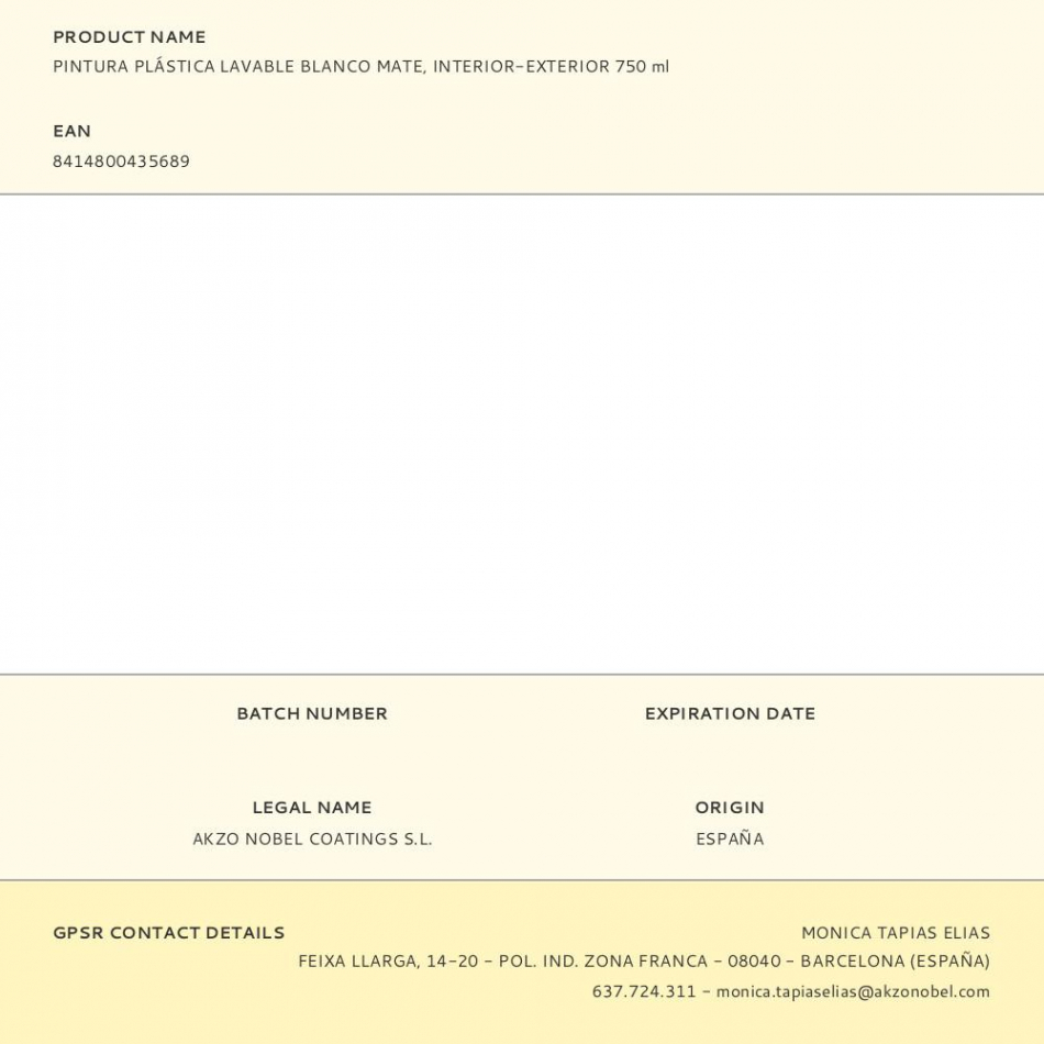 Pintura plástica lavable mate interior - exterior cobertura total blanco 750 ml. cubre con una sola capa, decora paredes y techos con un acabado de calidad y muy resistente. sin olor, no gotea ni salpica. con conservante anti-moho. respetuoso con el medio ambiente, rendimiento aproximado 7,5 m², secado en 30-60 min, repintado en 6-8 h