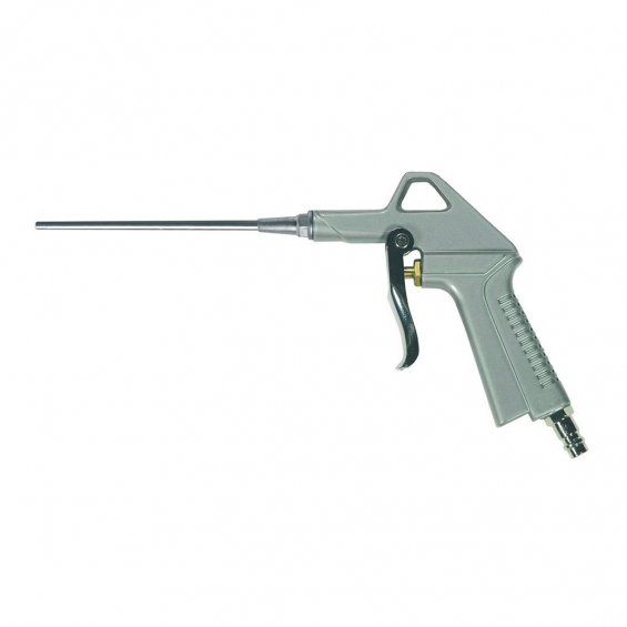 Pistola estandar de soplado de aire de 4 - 6 bar 125 l/m para aplicaciones múltiples como eliminación de polvo, secado y limpieza.carcasa robusta de aluminio. la extensión de su boquilla permite apuntar el flujo de aire