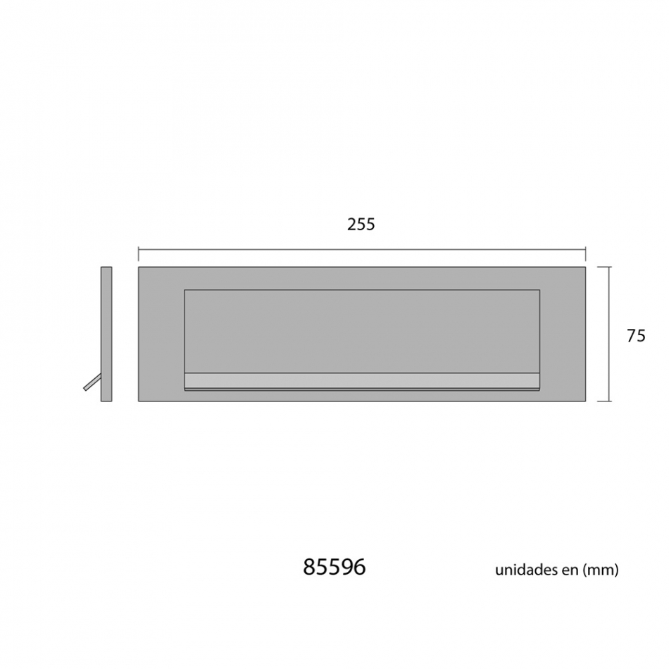 Placa buzón de aluminio. medida exterior: 25,2 x 7,5 cm, medida de la abertura : 20 x 4.5 cm distancia entre tornillos: 24 cm