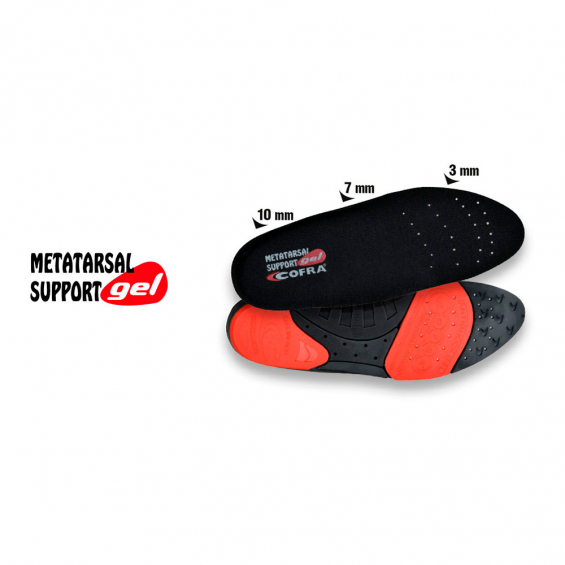 Plantilla metatarsal support gel talla 47 cofra. plantilla antiestatica, anatomica y perforada, en poliuretano perfumado, muy suave, forrada con tejido. aisla del frio y del calor