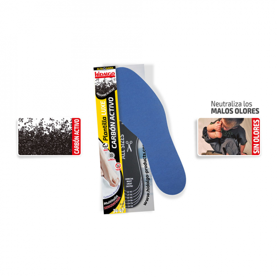Plantilla para calzado luxe carbón activo recortable hidalgo. neutraliza los malos olores. multitalla recortable, 34-47