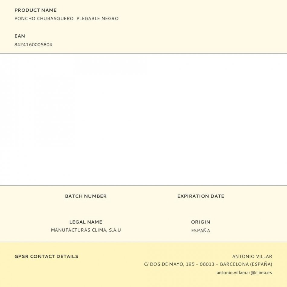 Poncho chubasquero plegable negro