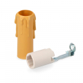 Portalámparas e-14 porcelana 4a 250v con vela mediana crema uso interior y salida de cable frontal 44145+44126 (envasado)