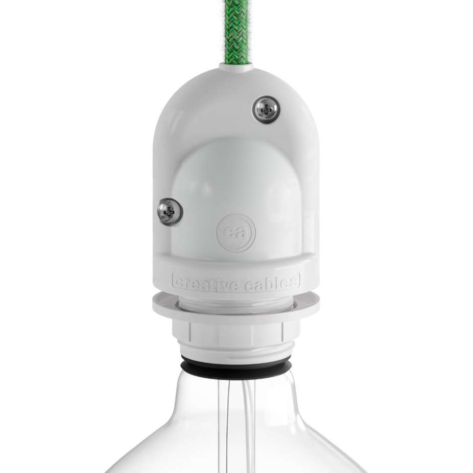 Portalámparas para exterior e27 blanco. ip65 con gel aislante. semiroscado + arandela. conexión con tornillos para cables flexibles de 1.0mm². con membrana que se apoya hermeticamente en bombillas led de vidrio para garantizar la estanqueidad. material termoplastico. para uso en exteriores con cables de goma de neopreno h05rn-f de seccion mínima de 1,00mm². para aparatos clase ii. (retractilado)