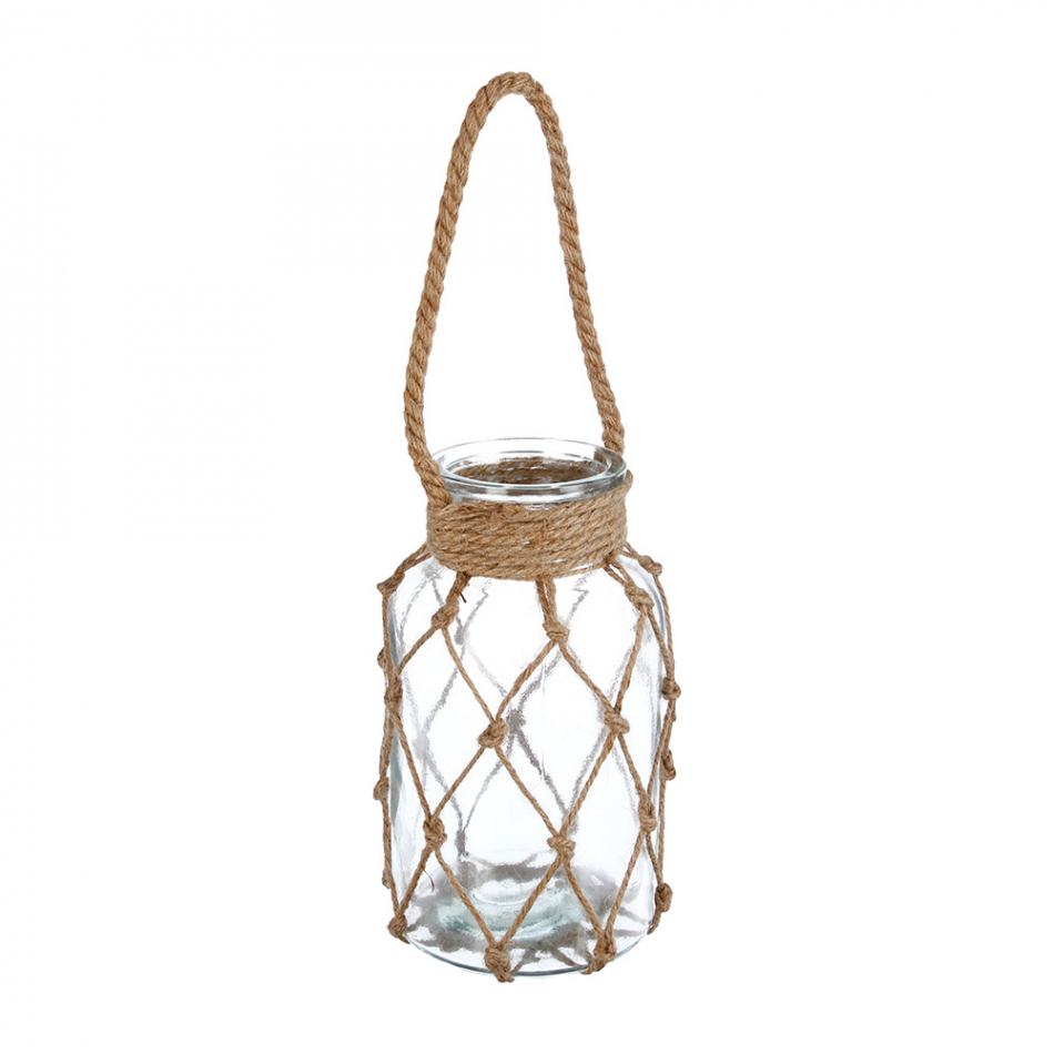 Portavelas con cuerda de rafia 26x15.5cm