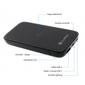 Con este power bank podrás cargar fácilmente dispositivos compatibles con carga inalámbrica Qi: simplemente, apoya el dispositivo a cargar sobre el power bank en la cara con el icono de carga.