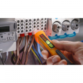 Probador de voltaje sin contacto y detector magnético pan voltfinder pancontrol.el led rojo en la parte superior y una señal acústica indican la presencia de voltaje ca de 100 a 600v.para la prueba de la fase unipolar, detección de cables con corriente,roturas en cables,bombillas defectuosas etc.