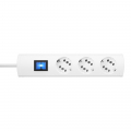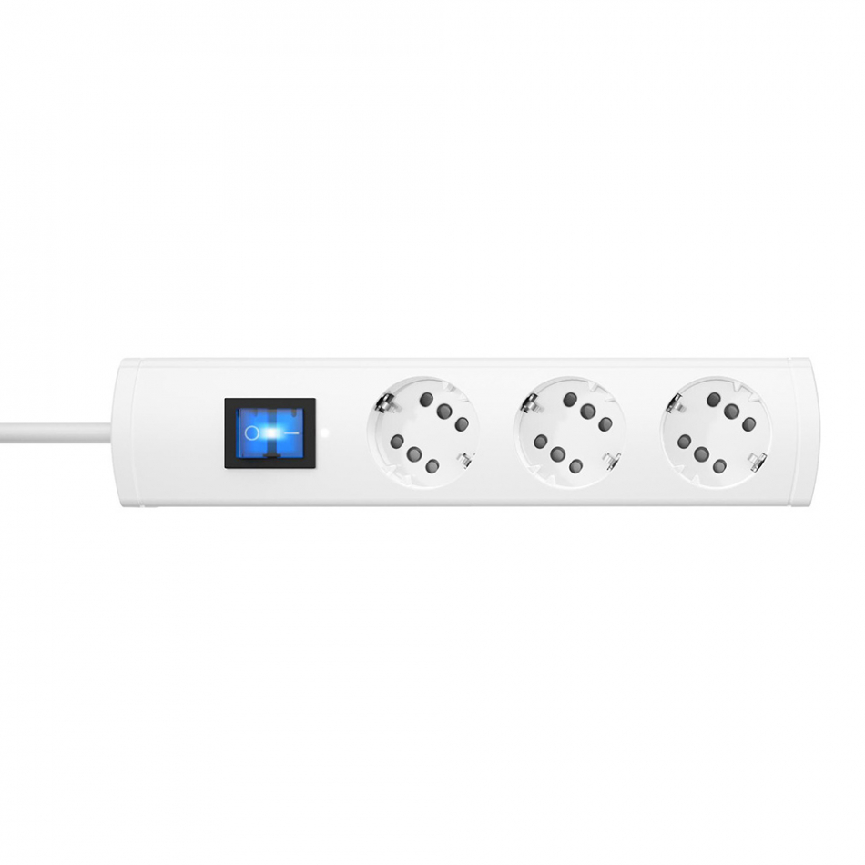 Prolongador 3 tomas + interruptor, duoversal plus 36, todas las tomas con posibilidad de conexión para un enchufe con toma de tierra o dos euroconectores,interruptor iluminado 2 polos, con obturador, con tomas giradas 35°, distancia entre tomas de 52 mm, línea de entrada de h05vv-f3g de 1,5 mm², con fijación, 1,4 metros de cable, montable, 16 a, 250 v~, ip20, blanco