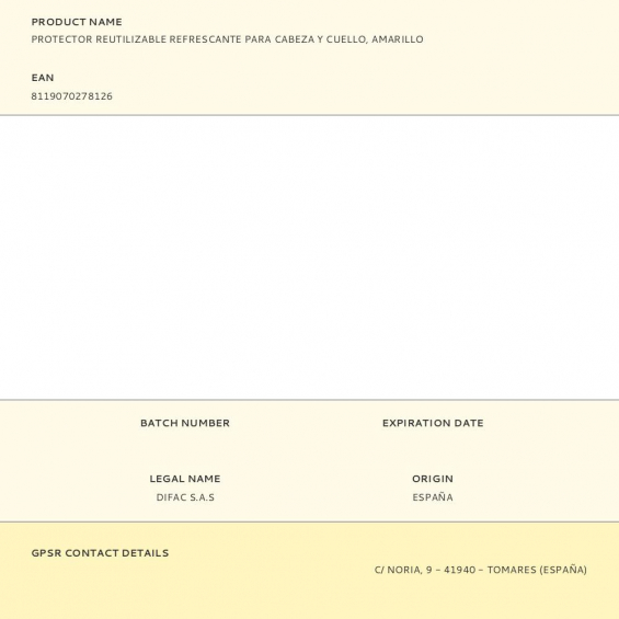 Protector reutilizable refrescante para cabeza y cuello, amarillo