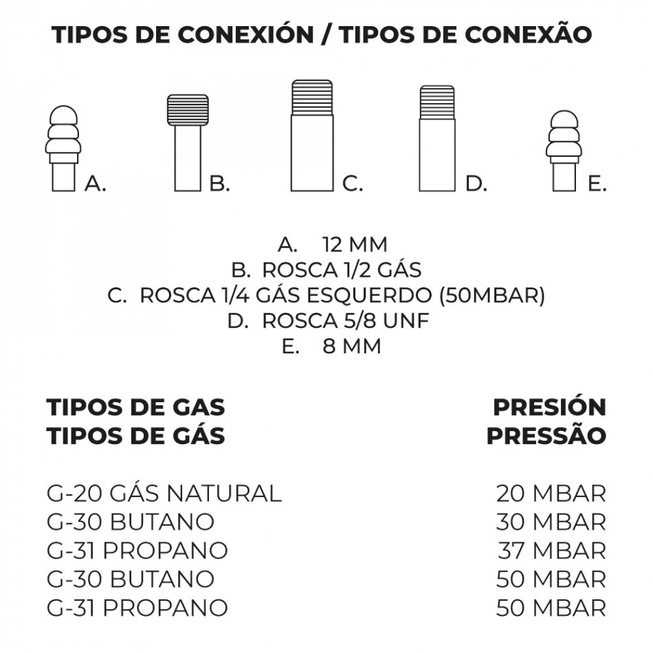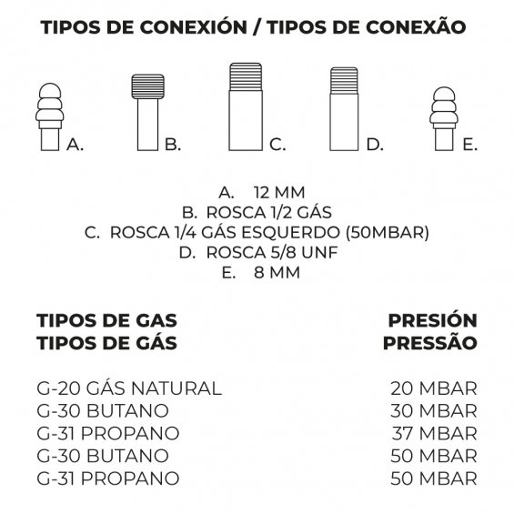 Quemador a gas modelo plano ø35cm. 2 fuegos homologado según la normativa de gas vigente. únicamente apto para uso en exterior. la salida del gas es lateral y se puede bajar el fuego al mínimo sin que se apague, es decir, tiene punto de seguridad.para butano, propano y gas natural certificado según directiva de los aparatos de gas.