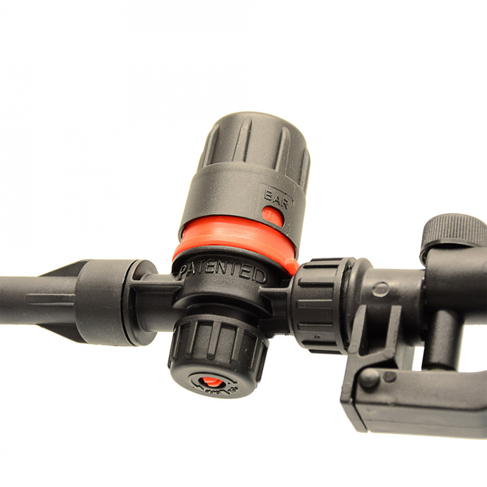 El regulador de presión, permite suministrar una cantidad constante de líquido y producto adecuada al tratamiento que se va a realizar. todo en uno, 4 configuraciones fácilmente accionables girando la empuñadura superior (1,2,3 bar) y la abrazadera inferior (on, off). segun estandar uni en iso 19932.