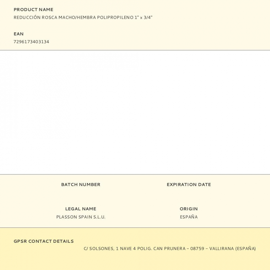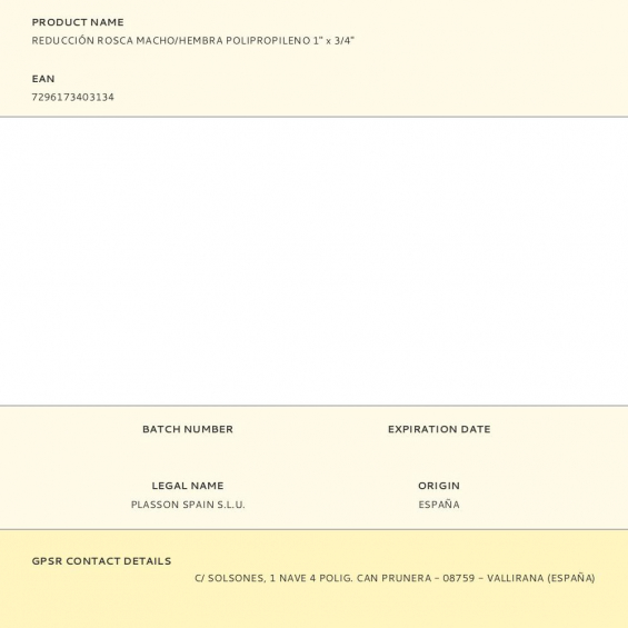 Fabricante:   PLASSON    P/N:      EAN:  7296173403134    Código:  380322