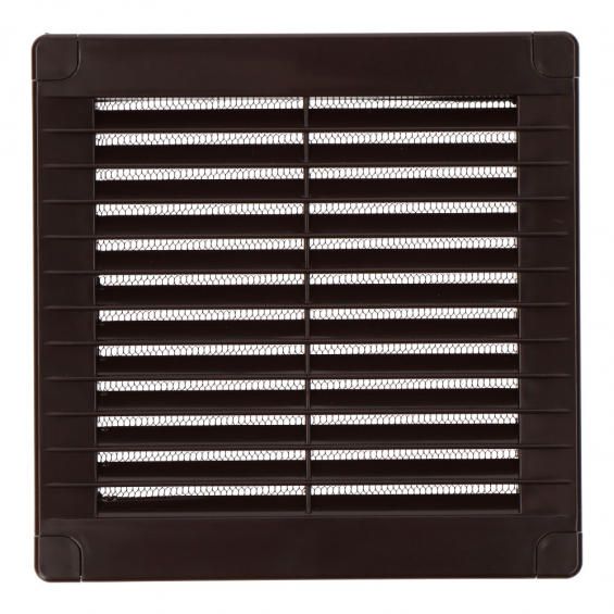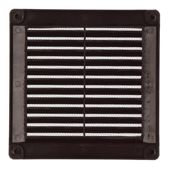 Rejilla ventilación cuadrada con tapones y mosquitera 150x150x7mm abs marrón