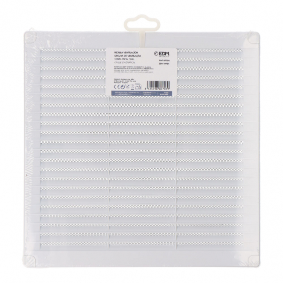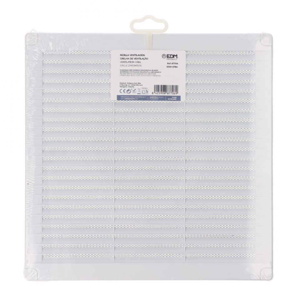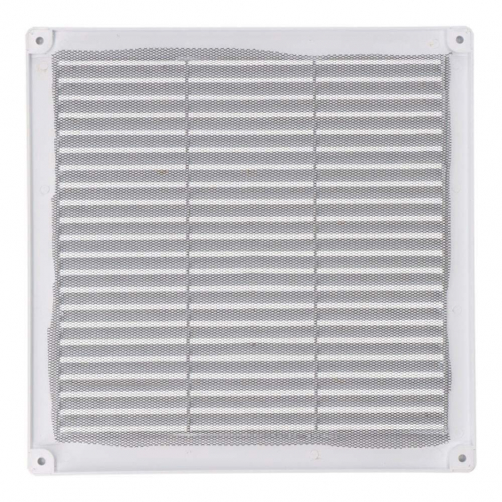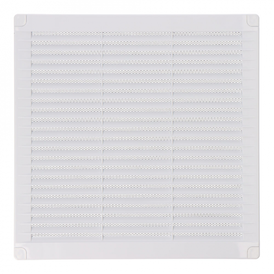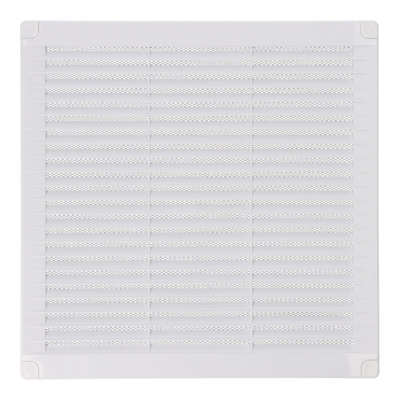 Rejilla ventilación cuadrada con tapones y mosquitera 250x250x7mm abs blanca