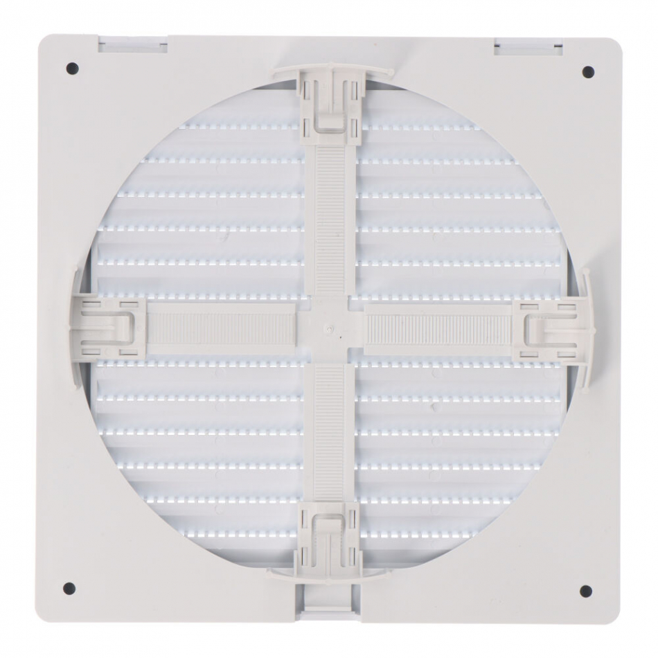 Rejilla ventilación cuadrada empotrable ajustable ø 80-150 con mosquitera 170x170x11,5mm abs blanca