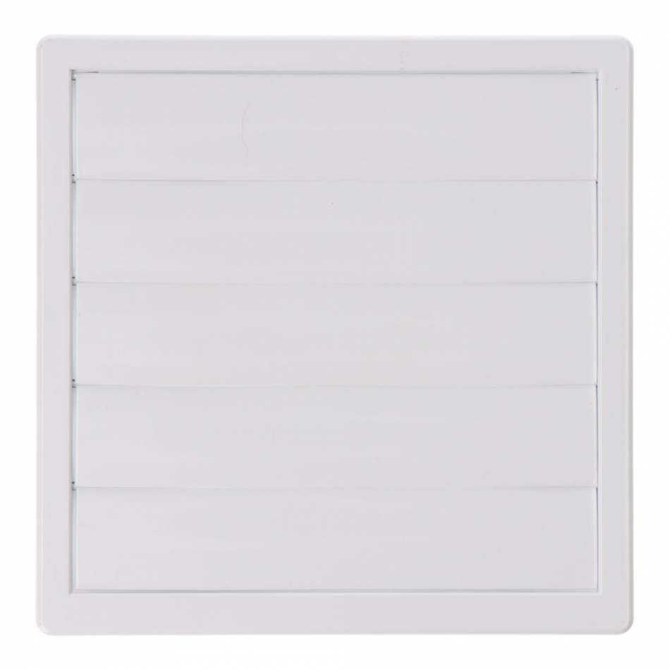 Rejilla ventilación cuadrada de plástico, empotrable con lamas móviles, medida 170x170mm enclavamiento ø120mm abs blanca