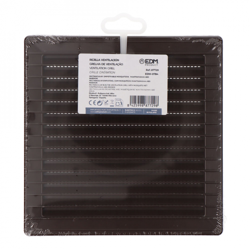 Rejilla ventilación cuadrada empotrable con mosquitera 140 x 140mm abs marrón
