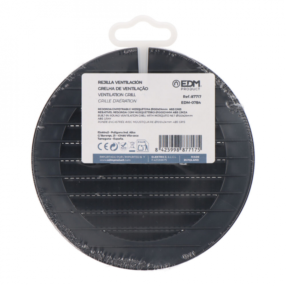 Rejilla ventilación redonda empotrable con mosquitera ø100mm abs gris antracita