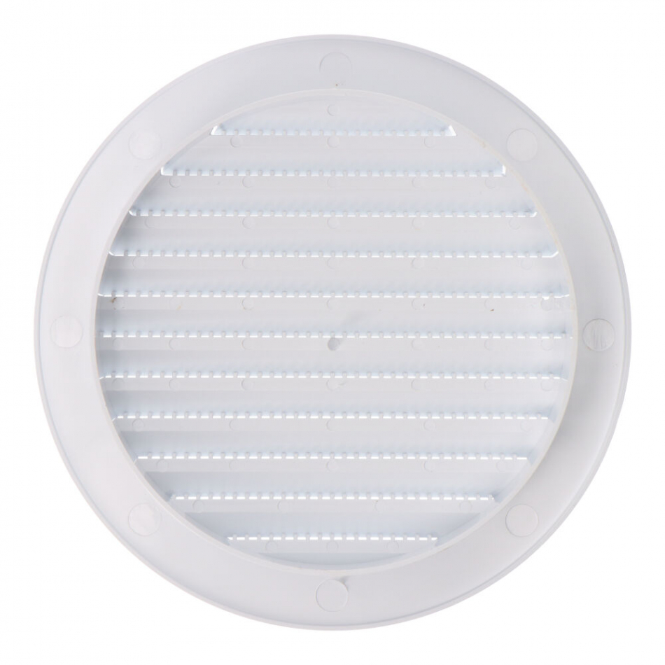 Rejilla ventilación redonda de plástico empotrable con mosquitera, medida enclavamiento ø120mm , medida ø14,7mm blanca