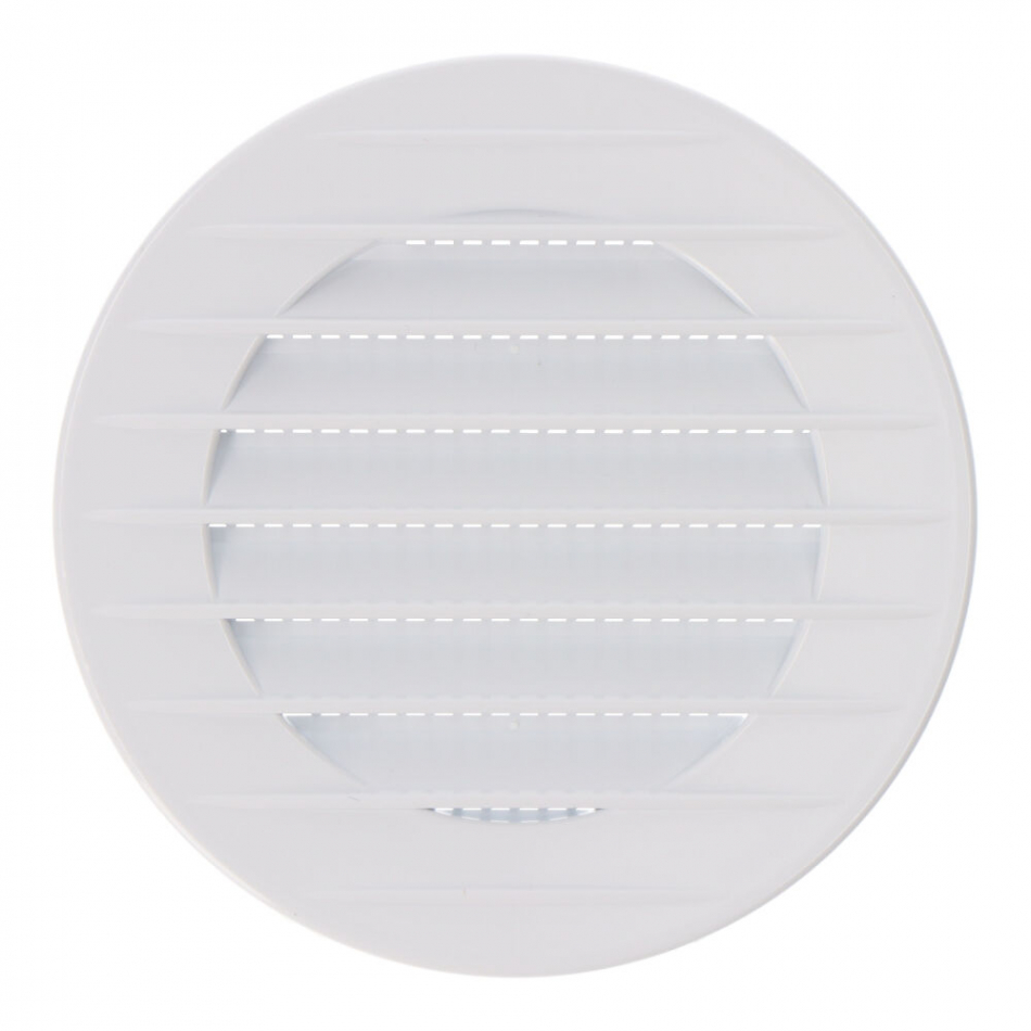 Rejilla ventilación redonda de plástico empotrable con mosquitera, medida de enclavamiento: ø70mm, medida: ø100mm blanca