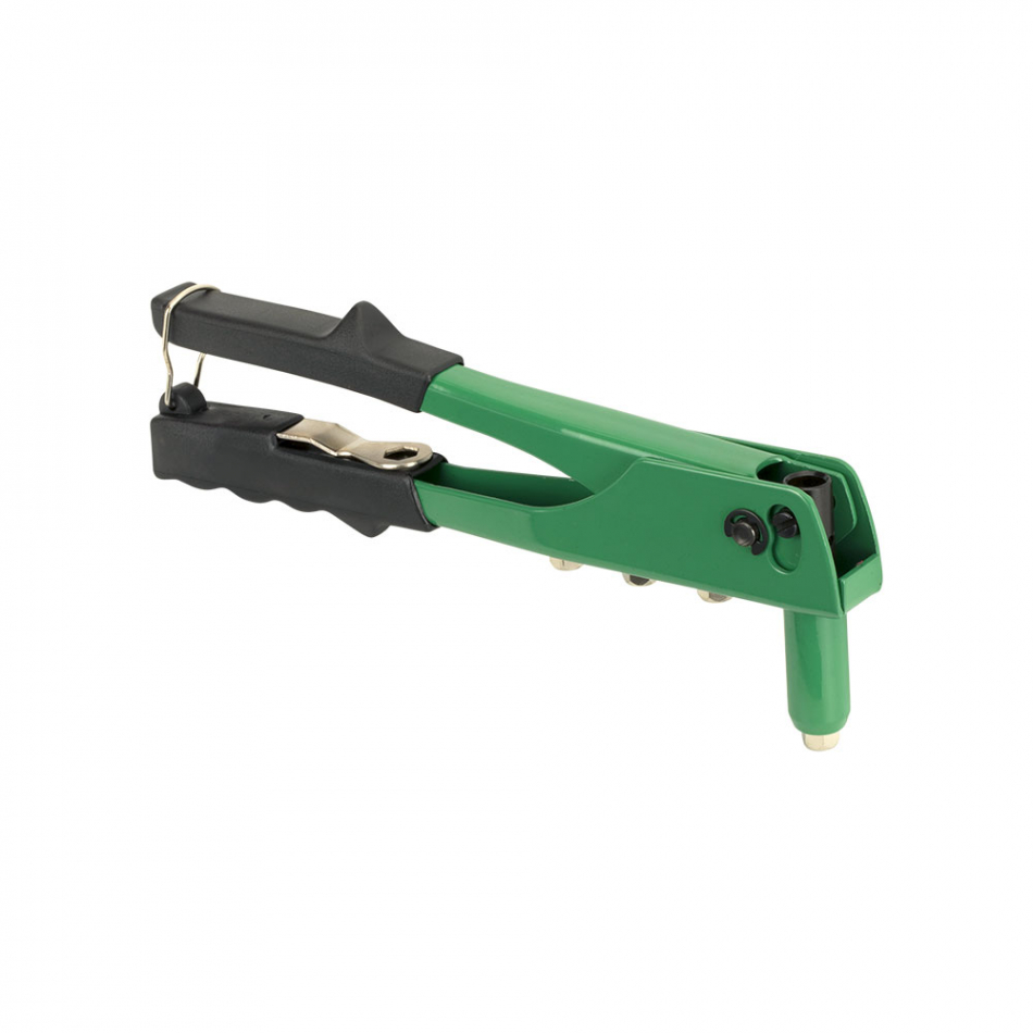 Remachadora b50 hobby 8500702 salki remachadora manual rsk b50 con cabezal intercambiable. consumible: ø2,4 - 3,2 - 4 - 4,8. carcasa: aluminio inyectado. características: palanca equipada con resorte de apertura. mecanismo automático y seguro de expulsión del vástago. para uso en espacios reducidos o de difícil acceso. incluye: mordazas intercambiables, llave de montaje y gancho cierre de seguridad.
