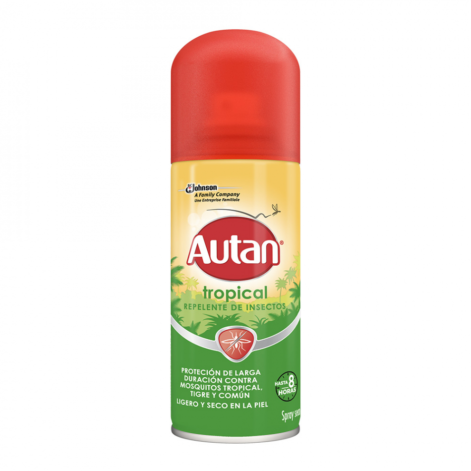 Repelente autan tropical spray 100ml es un repelende de mosquitos duradero, tan suave y seco en la piel, que apenas podra sentirlo. proporciona una proteccion eficaz e inmediata contra los mosquitos comunes, tropicales y tigre de hasta 8 horas. gracias a su formula, que contiene como ingrediente natural almidon de maiz en microparticulas finas, se seca rapidamente en la piel. ideal para brindar una optima proteccion a viajeros en zonas tropicales, es adecuado para niños mayores de 12 años. repele a los mosquitos que pueden ser portadores del chikunguña, el virus del nilo occidental, la fiebre amarilla y el denge.