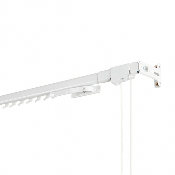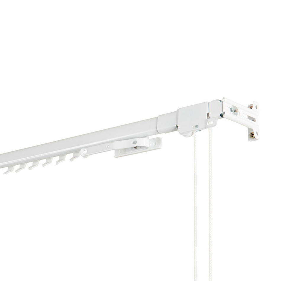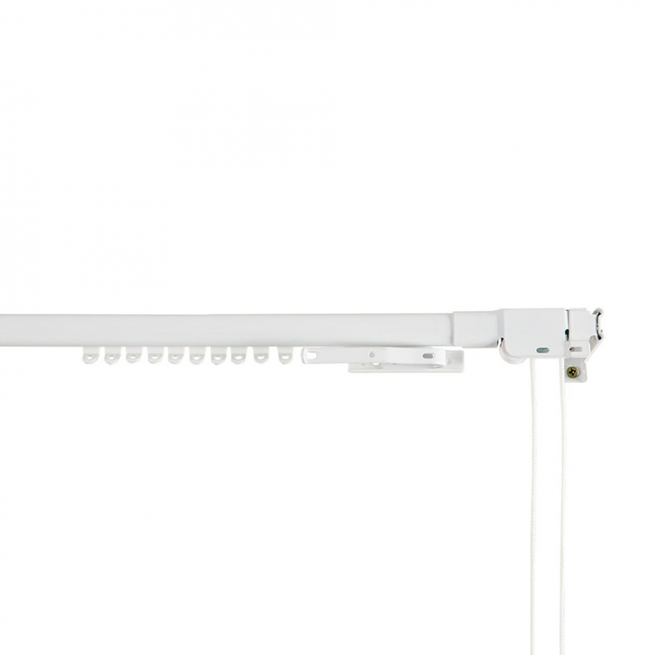 Riel extensible para cortinas fabricado en metal de color blanco. incluye soportes, tacos, tornillos, 1 corredera maestra y 10 correderas. cintacor - storplanet