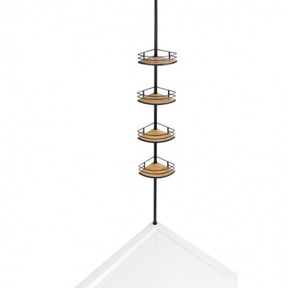 Rinconera telescópica de acero inoxidable Dolcedo Se puede utilizar en cabinas de ducha, esquinas de bañera o en los baños, en general. Ofrece mucho espacio para champú, jabón, esponjas, etc. Contiene 4 cestas de alambre y 1 varilla telescópica. Extensible a máx. 275 cm. El diámetro del tubo de aluminio es de 22 mm. Colocación estable de los utensilios de baño gracias a la incrustación de bambú en la base de los cestos.