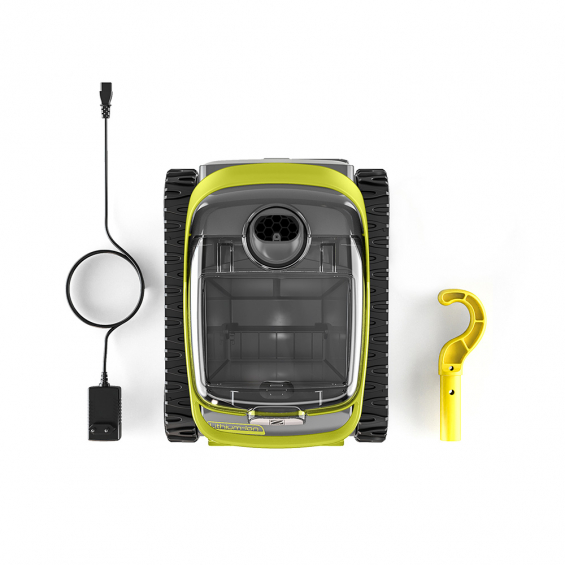Robot a batería pixel op3220 para piscinas de hasta 8 x 4 m, limpia el fondo y paredes en 1 ciclo de 2 h. boca de aspiración 17 cm. filtro: 2 l. visibilidad de los residuos: ventana transparente. autonomía de 120 min, con indicador led. batería: 21,6 v 5100 mah. incluye: cargador, anillo flotante y gancho