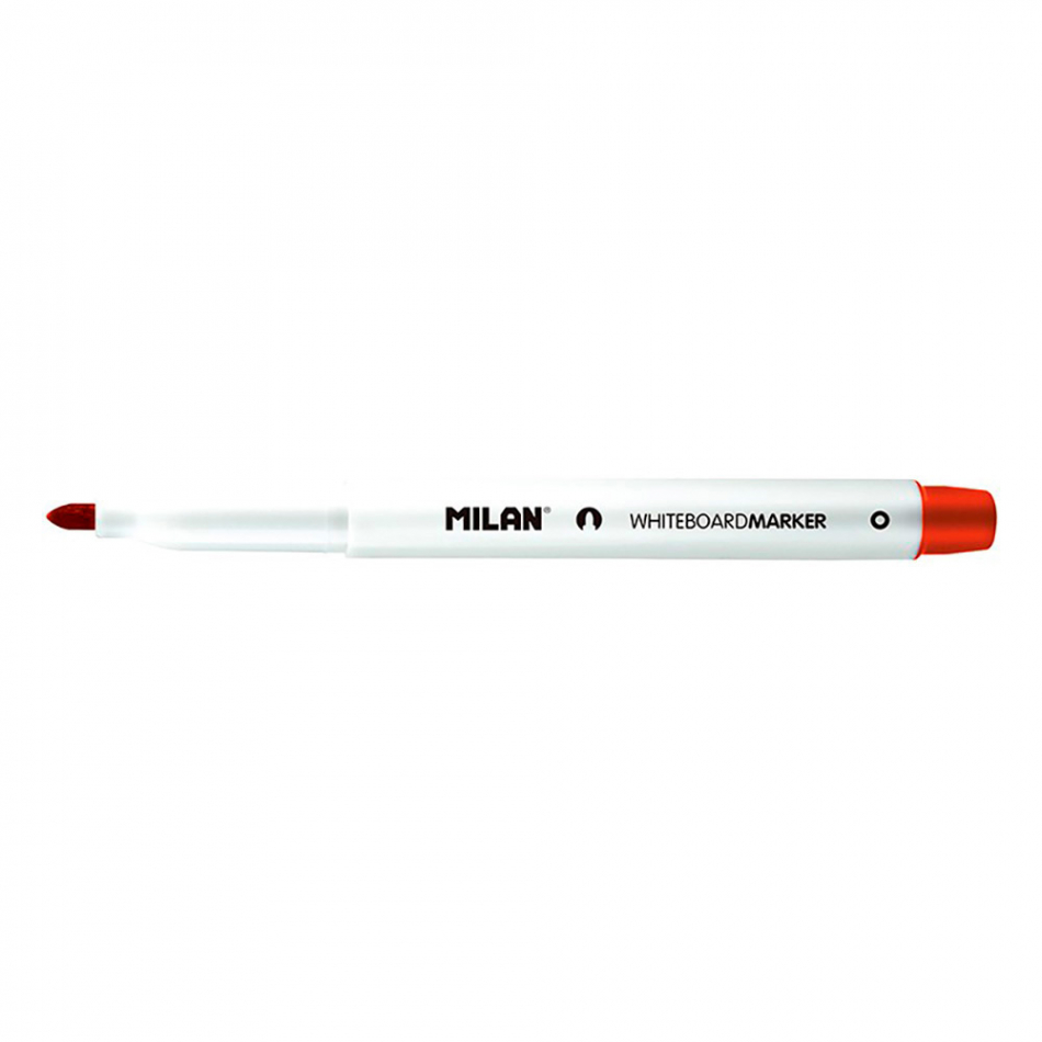 Caja de 12 rotuladores rojos para pizarra blanca milan. rotuladores para pizarra blanca, color rojo. borrable en seco. tinta a base de alcohol. punta redonda ø3,7mm. recomendamos tapar después de usar y almacenar en posición horizontal. rotuladores de recambio para el borrador magnético ref: 16589123