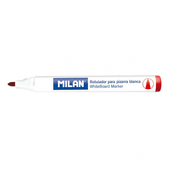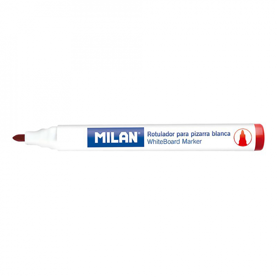 Caja de 12 rotuladores rojos para pizarra blanca milan. rotuladores para pizarra blanca, color rojo. borrable en seco. tinta a base de alcohol. punta redonda ø4,7mm. recomendamos tapar después de usar y almacenar en posición horizontal. rotuladores de recambio para el borrador magnético ref: 16529123