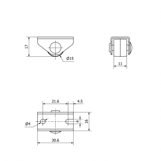 Rueda fija con placa y eje liso de dos fijaciones, color negro, carga máx. 20 kg, ø 1,5 cm