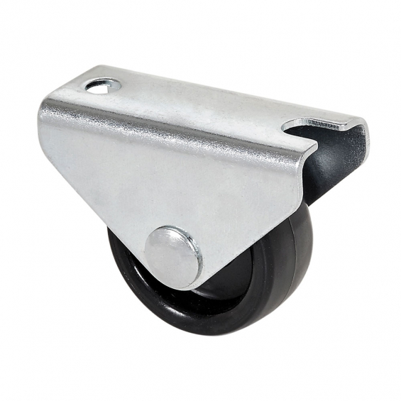Rueda fija con placa y eje liso de dos fijaciones, color negro, material: polipropileno-plástico, carga máx. 20 kg, ø 1,5 cm