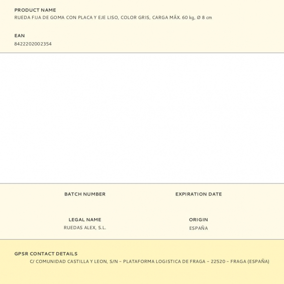 Fabricante:   RUEDAS ALEX    P/N:      EAN:  8422202002354    Código:  381578
