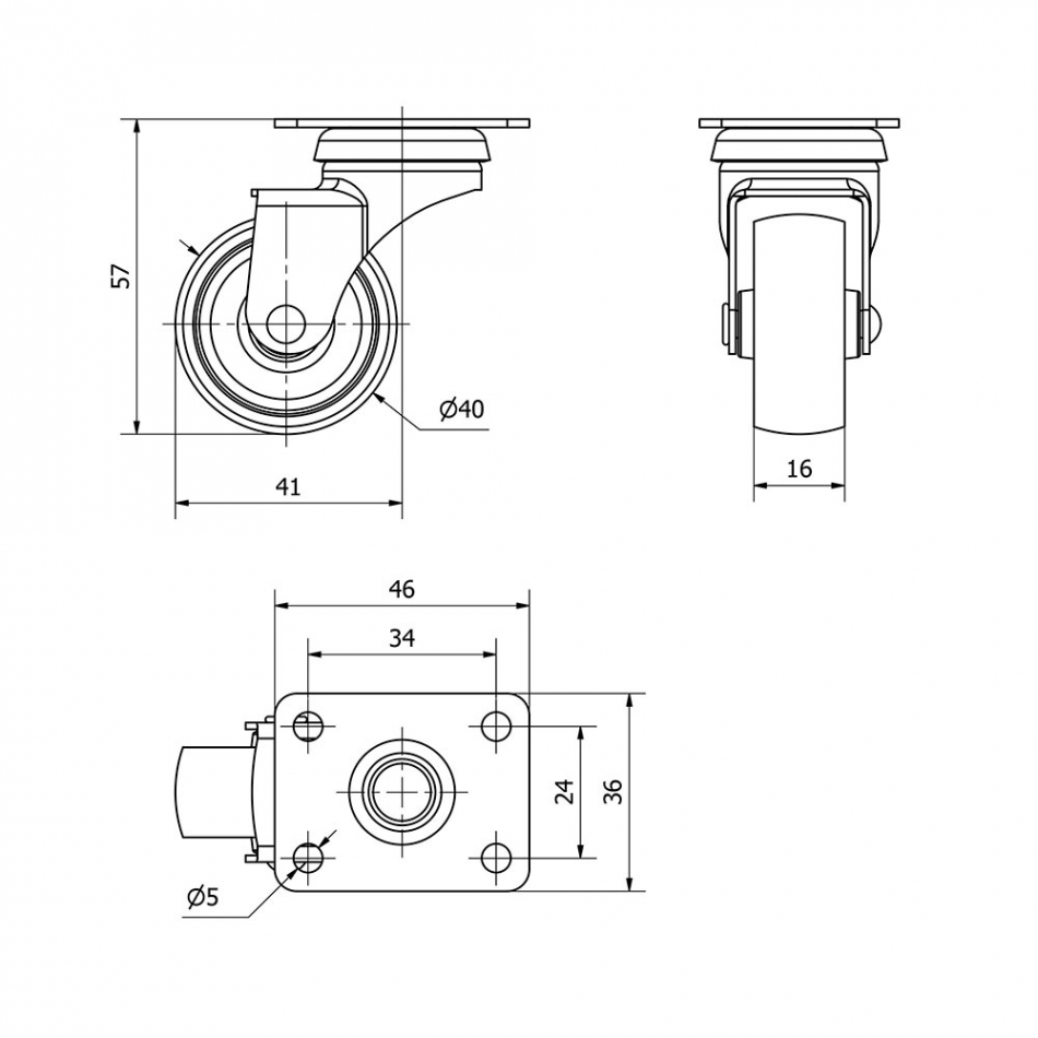 Rueda giratoria con placa y eje liso, color gris, carga máx. 22 kg, ø 4 cm