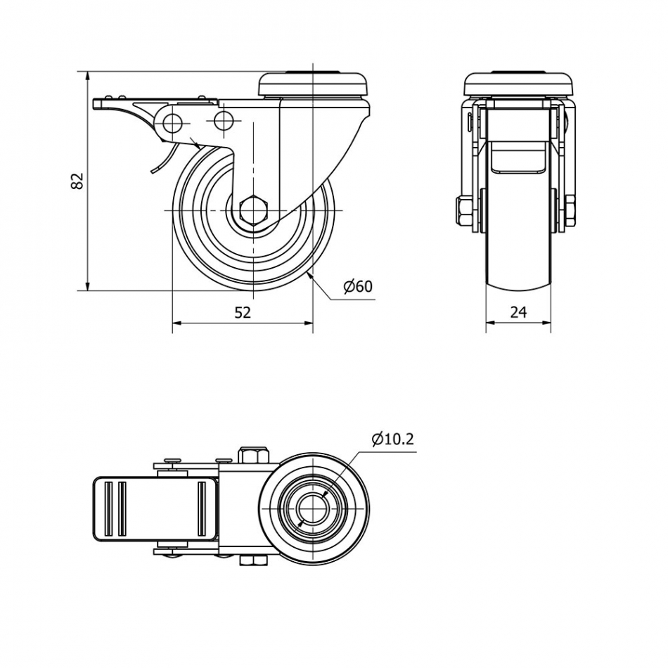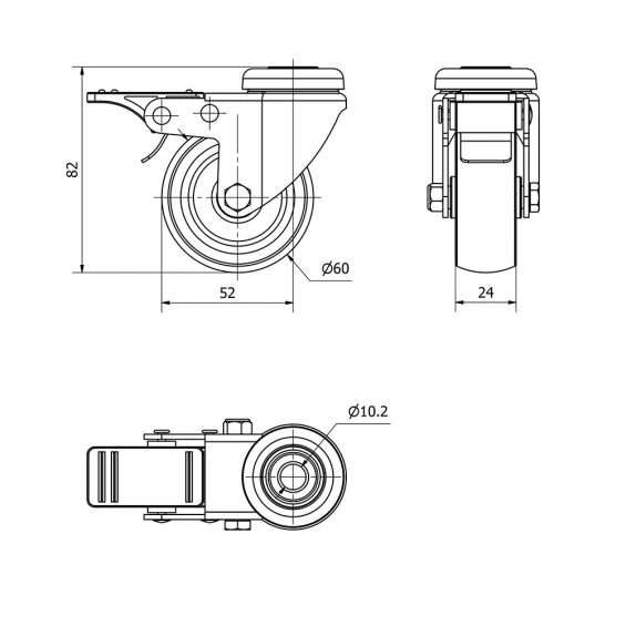 Rueda giratoria con agujero, eje liso y freno, color gris, material: poliamix - goma, carga máx. 50 kg, ø 6 cm