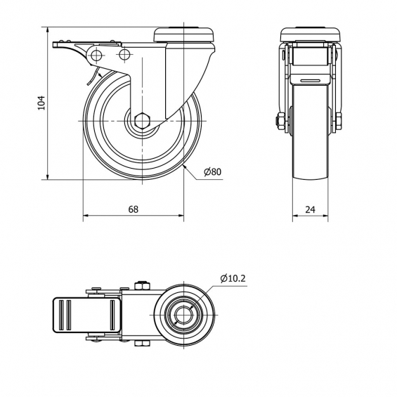 Rueda giratoria con agujero, eje liso y freno, color gris, material: poliamix - goma, carga máx. 60 kg, ø 8 cm