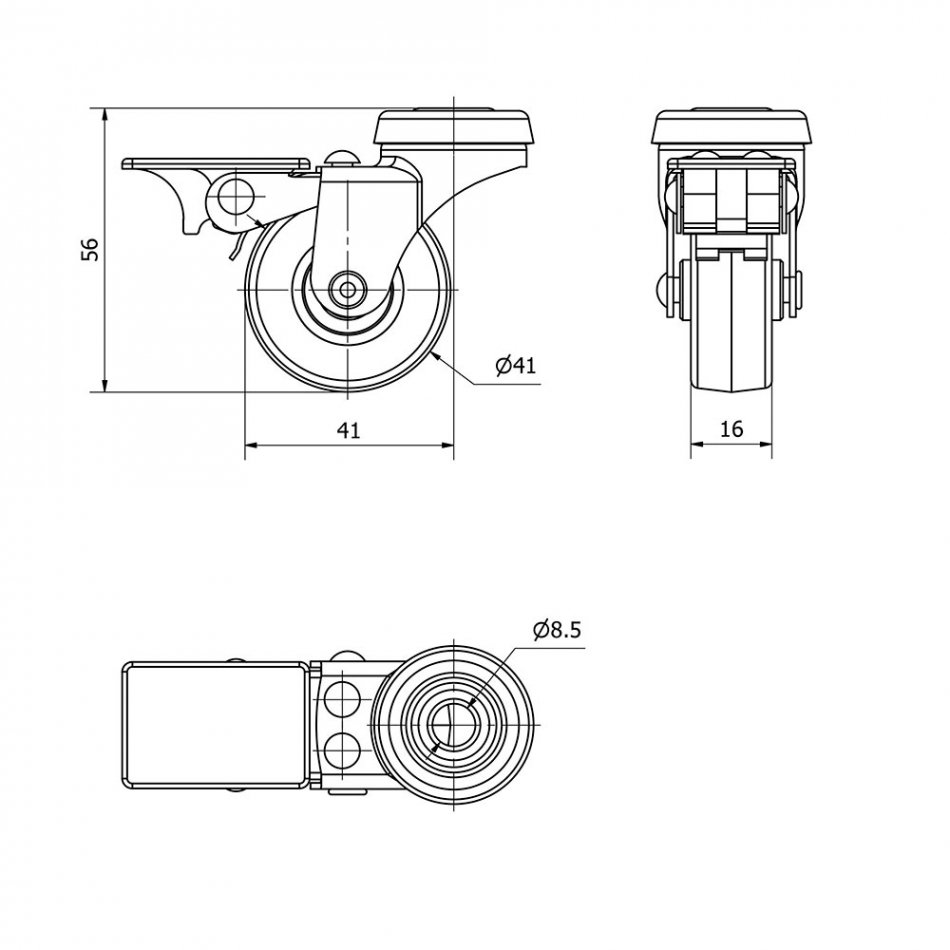 Rueda giratoria de goma con agujero, freno y eje liso, color gris, carga máx. 17 kg, ø 4 cm