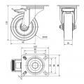 Rueda giratoria con placa eje de rodillos y freno, color azul, material: poliamix - goma, carga máx. 100 kg, ø 10 cm