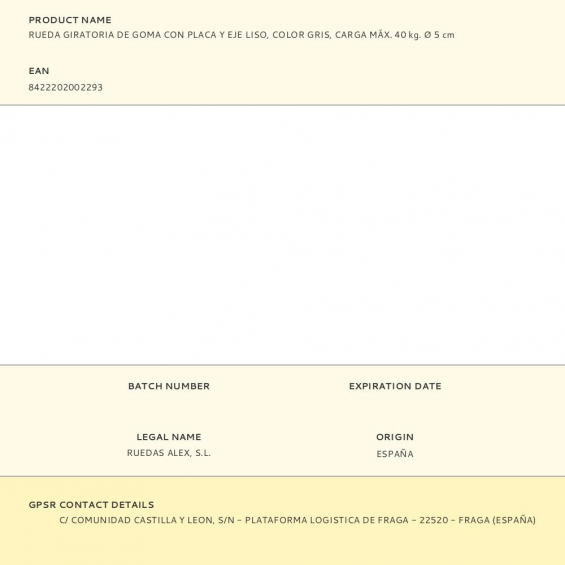 Fabricante:   RUEDAS ALEX    P/N:      EAN:  8422202002293    Código:  381568