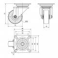 Rueda giratoria de goma con placa y eje liso, color gris, carga máx. 40 kg. ø 5 cm