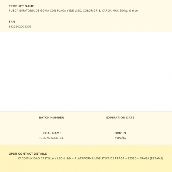 Fabricante:   RUEDAS ALEX    P/N:      EAN:  8422202002309    Código:  381570