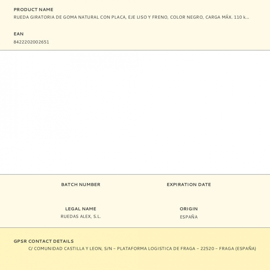 Fabricante:   RUEDAS ALEX    P/N:      EAN:  8422202002651    Código:  381638